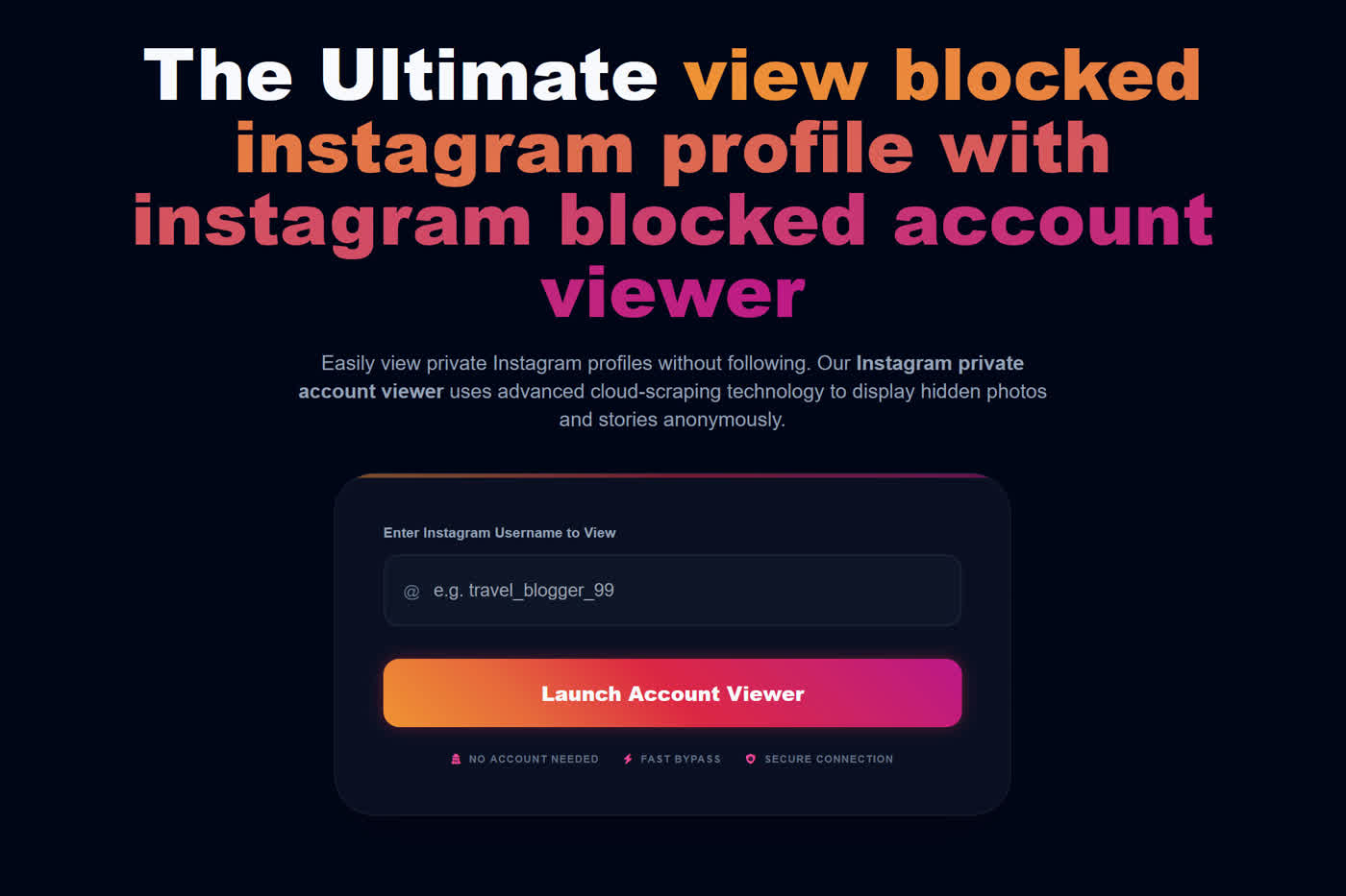 View blocked instagram profile with this instagram blocked account viewer online app. Enter username and view blocked instagram anonymously.