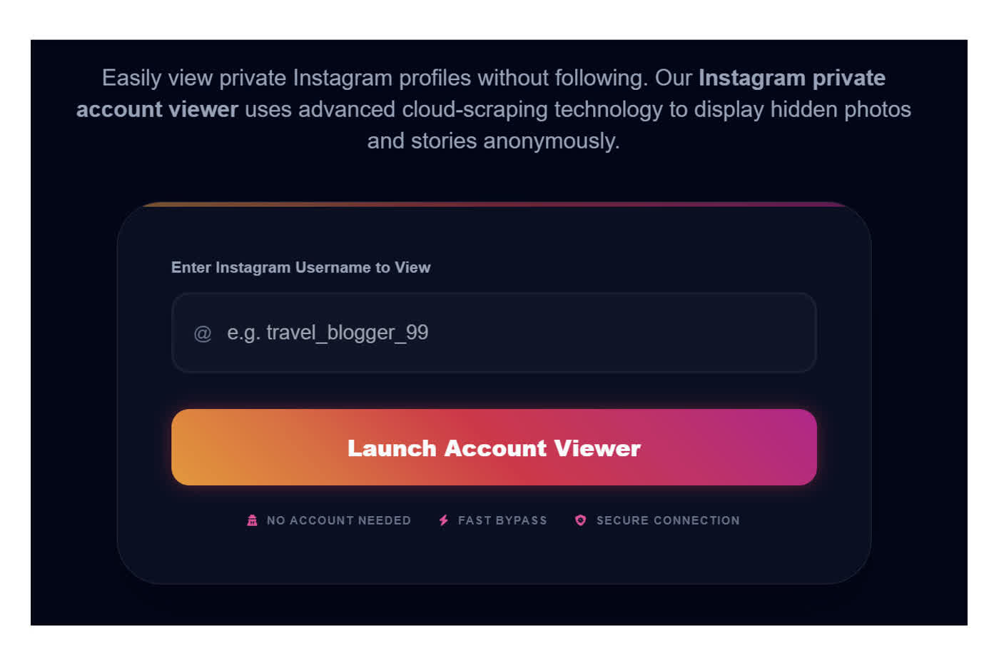 Our instagram private photo viewer lets you secretly view insta privacy photos on public or private profiles. Enter IG username to start.