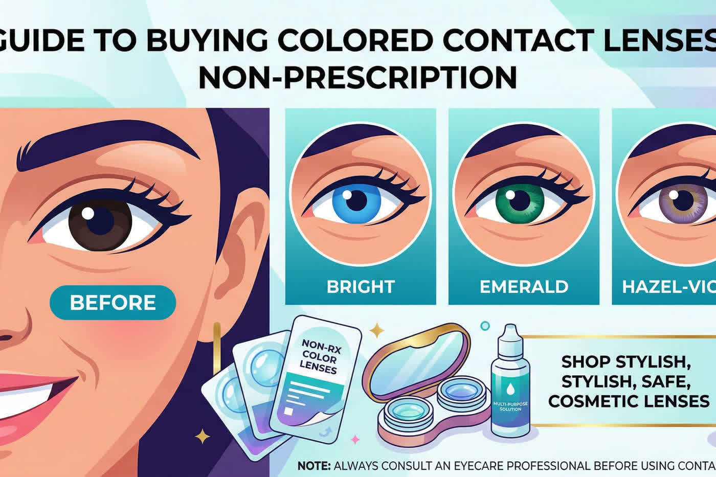 If you have perfect vision, you are likely searching for colored contact lenses non prescription. But before you buy the first pair you see online, there is some crucial safety and sizing information you need to know.